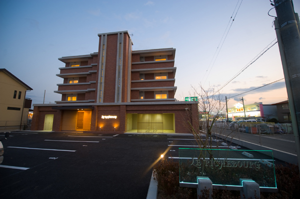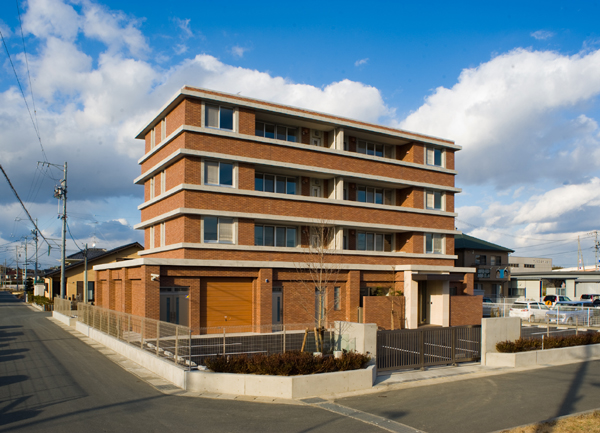 ■ 作 品 名 lE RICHEBOURG (ル・リシュブール)■ 種 別 新築 共同住宅及び事務所■ 規 模 等 鉄筋コンクリート壁構造4階建■ 建築面積 268u■ 延床面積 596u■ 所 在 地 静岡県浜松市西区雄踏クラシカルで重厚だが、シャープでモダンな賃貸マンションである。1階は、事務所となっている。