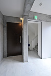 エントランスは、斜めの壁と垂直の壁で折り紙のような